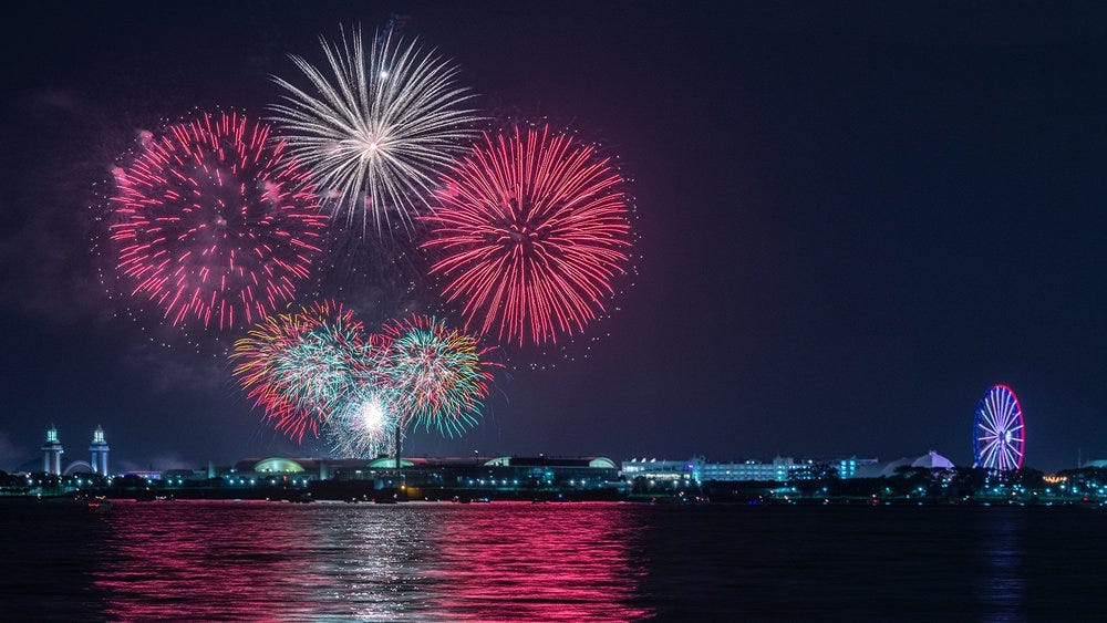 Like Kinko’s, I have a long history and love of fireworks. Growing up, we would pile into my Mom’s 1976 blue Chevy Impala station wagon and head to the local school to watch the fireworks display on Fourth of July. When I was older, my high school friends and I would take the Metra train downtown for the Taste of Chicago. We would stake out a spot in Grant Park, buy way too much overpriced food, and watch the fireworks display from Navy Pier. At midnight on January 1, 2000, I celebrated the beginning of a new millenium and a new relationship with Chris under an enormous fireworks display on the rooftop of Marina City in Chicago.