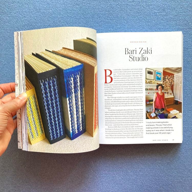 I received my copy of Rag & Pulp – the latest installment in the Encyclopedia of Inspiration series from Uppercase Magazine. These subject-specific books are beautifully designed and chock-full of creative inspiration and resources. This volume, focused on all things paper, features Bari Zaki Studio – my favorite purveyor of paper products, bookbinding, and stationery supplies. I ordered my copy directly from Bari so I could experience her trademark unboxing experience and snag one of these handmade bookmarks that are included with every of the book from her online shop.