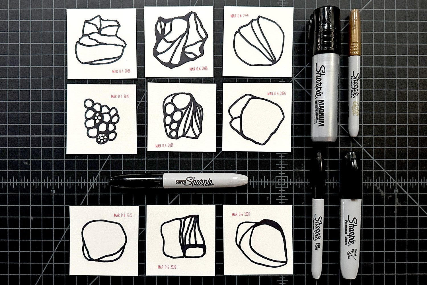 It’s just so satisfying laying down that thick black line onto a porous, eagerly accepting white paper. I’m partial to the Super size. The original (fine point, which is a strange name because it’s pretty chunky) and original metallic colors are close seconds.