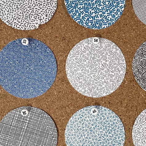 Then I start arranging the motifs into a repeating pattern — first figuring out the edges so the pattern will tile seamlessly, and then playing with color, placement, rotation, and layering. Once it starts working, the pattern can keep going infinitely, which is both satisfying and a little magical. ✨