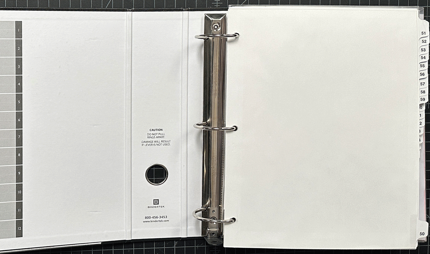 52 started as a numbered tab in my master binder (see below) with class notes, a DIY gel plate recipe, and print samples in clear binder sleeves.